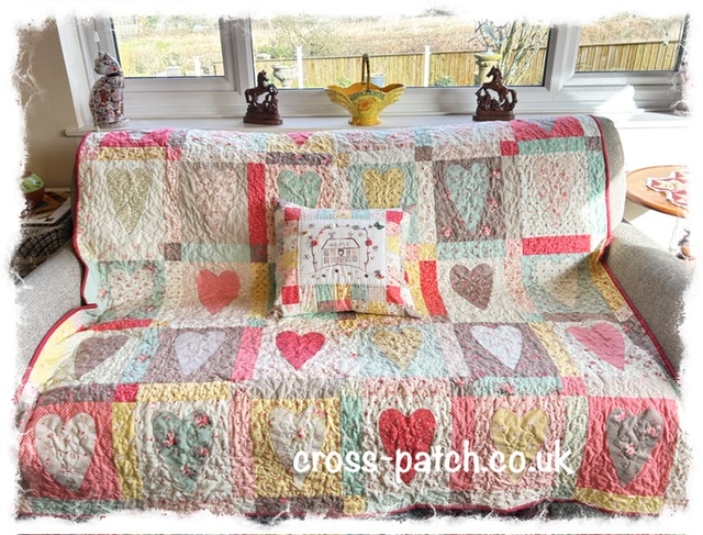Instructions how to make the French Country Hearts quilt. Template for heart enclosed. also instructions how to make matching cushions. Finished size approx 54″ by 64″.