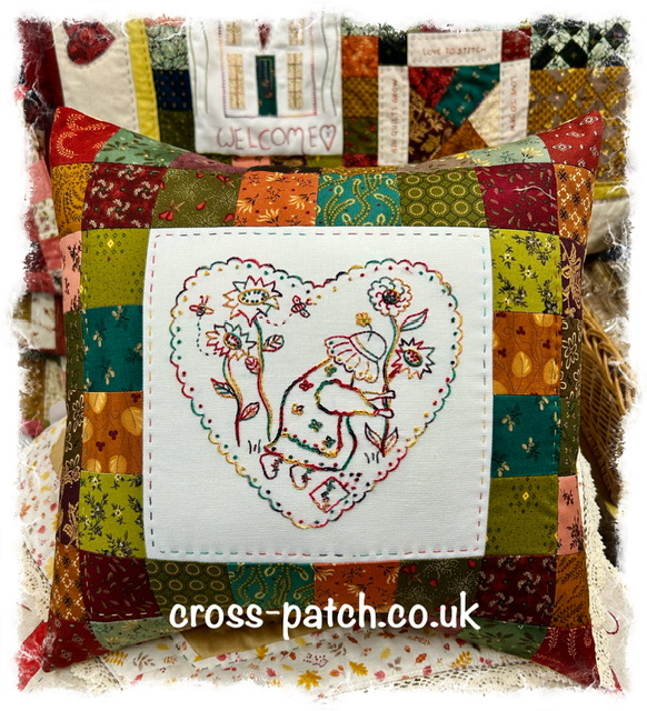 Cross patch stitchery heart panel