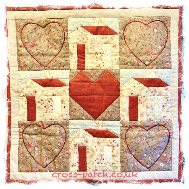 Templates to make a 6” and 12” house block. Detailed instructions plus pattern includes heart block instructions to make the wallhanging
