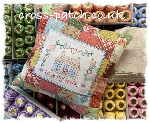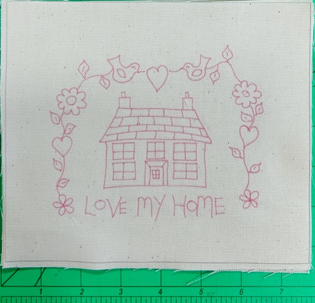 A stitchers home panel, fabric approx 10” square, just stitch and surround with 2.5” squares to make a pretty cushion or picture