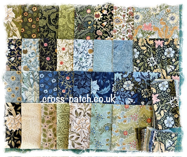 Pack of 60 squares of 2.5” of William Morris prints from Moda- 2 of each design
