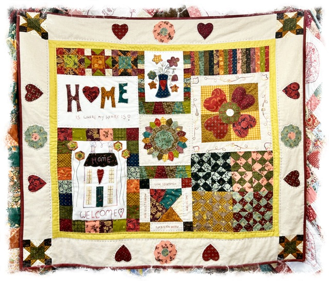 A comprehensive pattern of over 20 pages with traceable templates for all techniques and stitcheries- Welsh and English stitchery templates included. Use with our acrylic templates or just trace the templates in the pattern. Lots of full colour photos included. I used the Kim Diehl trio of pre cuts for mine. You will need linen, border fabrics and stitchery panels- full kit including pattern also available- see separate listing