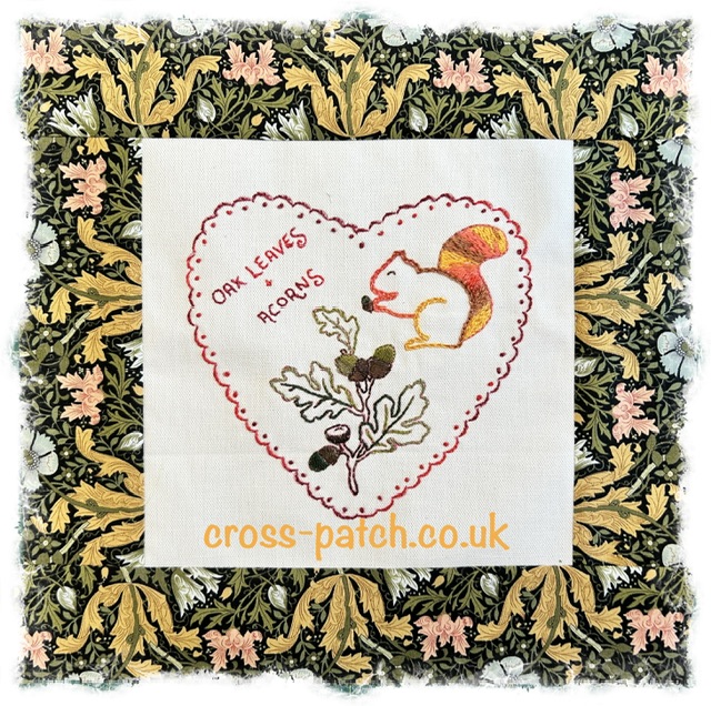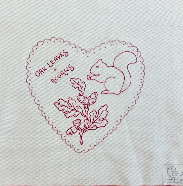 Oak leaves and squirrel stitchery heart