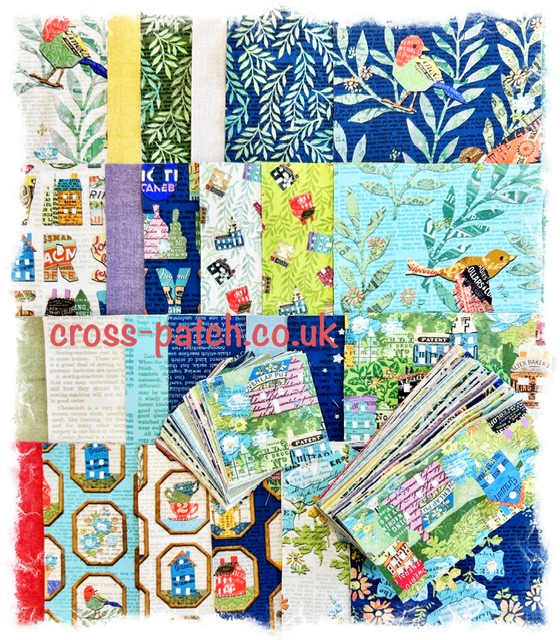 Pack of 50 rectangles of 2.5” by 5” of gorgeous Paper Hamlet fabrics by Cathe Holden together with some linen texture blenders