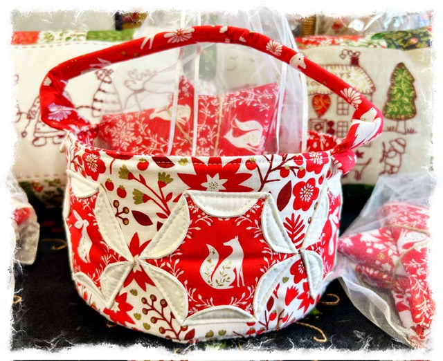 Instructions to make the bag or andd a lid to make a box, ideal for storing threads etc, includes traceable appliqué templates for bunny, flower and hearts plus traceable templates with instructions to make the hexie flower version.
